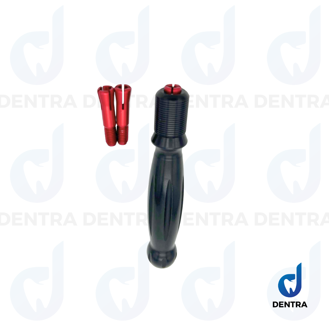 Designed by Ruben Chilingaryan, this high-quality holder offers a secure, stable grip while prepping, preventing burns, slips, or lost analogs. Engineered for versatility, it is compatible with all implant systems and includes three chucks for different analog sizes:
